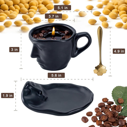Scented Candle Gift Set - 8.5 Oz Coffee Cup Candles with Spoons, Long-Lasting Soy Wax Candles, Relaxing Vanilla Latte Scents, Home Decor Gifts for Coffee Lovers, Men, Women, Dad, Birthday, Christmas