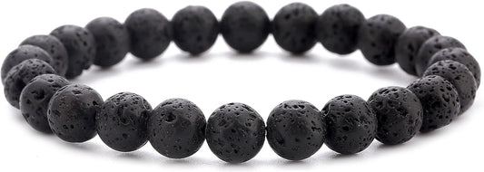 Men - Women 8Mm Natural Stone Lava Rock Diffuser Bracelet Elastic Yoga Agate Beads Bracelet Bangle