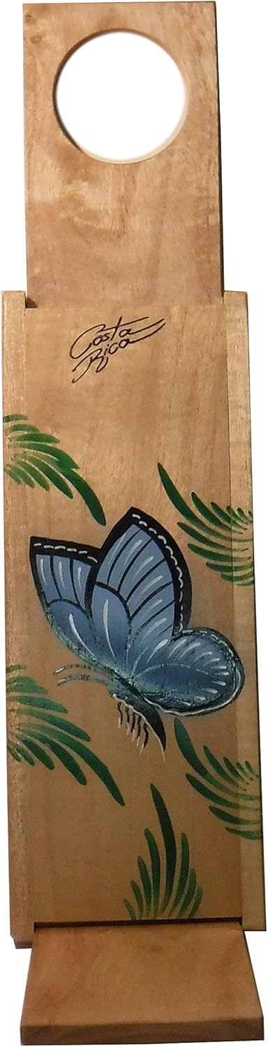 Chorreador,Costa Rican Handmade Portable Foldable Wooden Stand Coffee Maker,Included:1 Large Reusable Cloth Filter(Bolsa De Chorrear Cafe),Model:Blue Morpho Butterfly, Color:Light, Wood: Gmelina